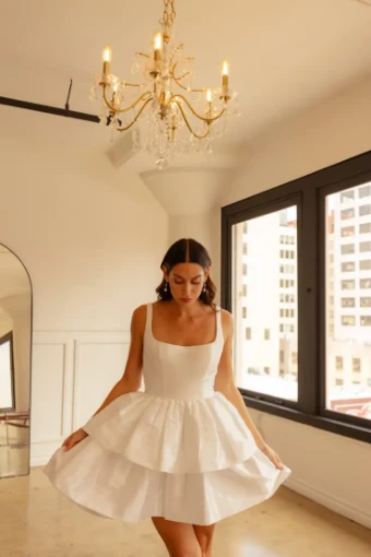Luxe Satin Short A-Line Wedding Dress with Convertible Underskirt