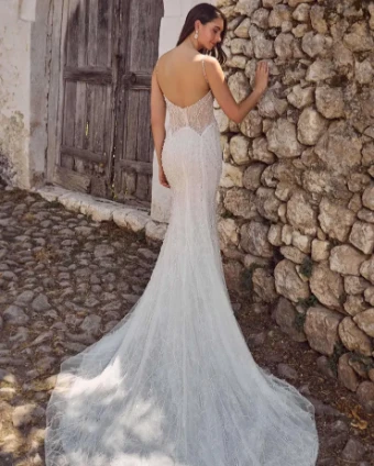 Gisela is the embodiment of sexy wedding dress sophistication. This show-stopping gown dazzles with her intricate pearl beading and sultry silhouette, perfect for the bride looking to make an unforgettable statement. Her sweetheart neckline and delicate spaghetti straps highlight the décolletage, while sparkling details throughout the dress capture the light in every photo. For even more drama, her detachable overskirt adds a touch of grandeur, transitioning seamlessly from a sleek sheath gown to a romantic look that commands attention. Whether paired with the overskirt or worn on its own, Gisela’s combination of vintage glamor and modern allure makes her the perfect choice for a luxurious celebration.
